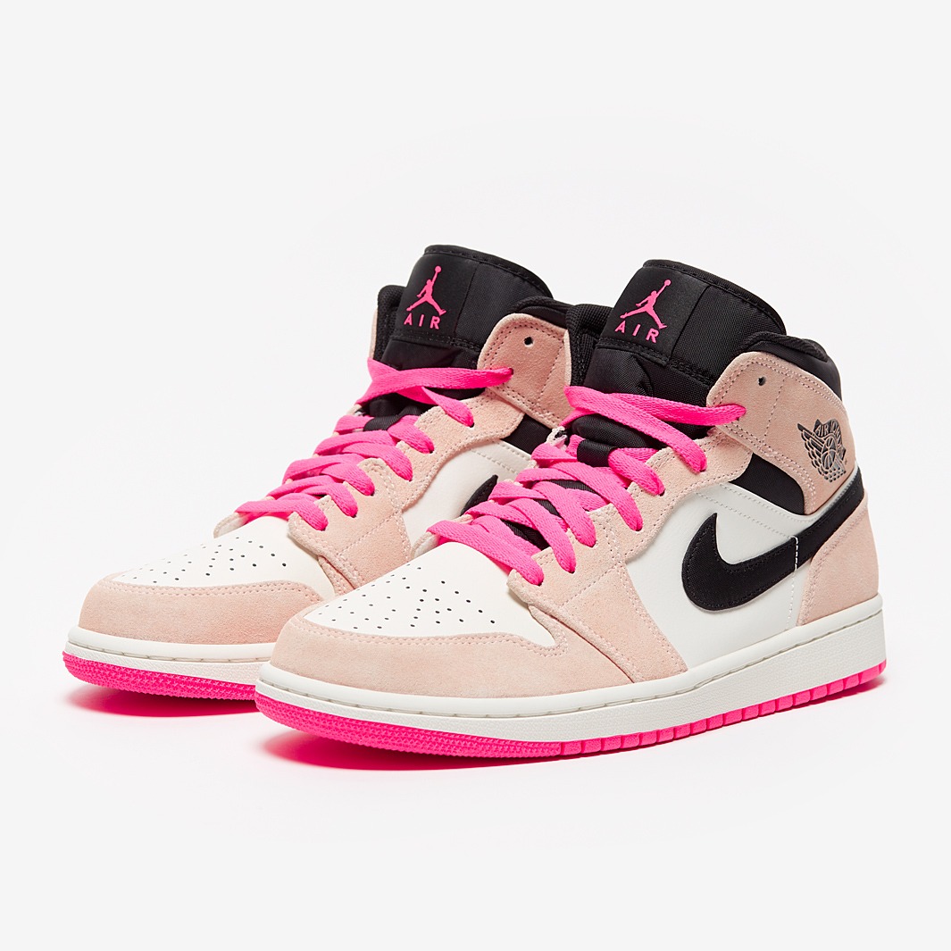 Nike Air Jordan 1 Retro, белый, розовый, кожа, нубук, женские