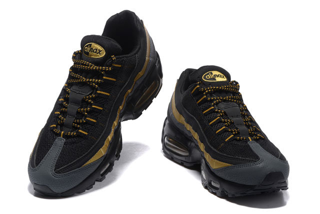 Nike Air Max 95, чёрные с золотым, нейлон, текстиль, замша, мужские, женские Размер 36