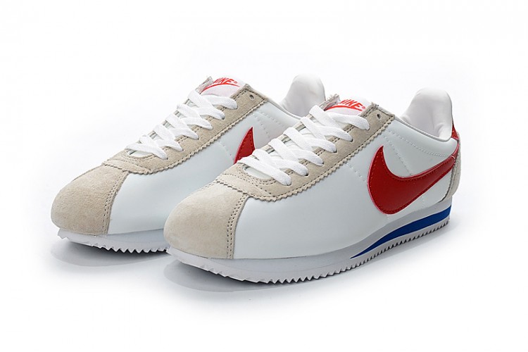 Nike Cortez White/Red, белые с красным, бежевым и синим, нейлон, замша, кожа, мужские, женские Размер 40