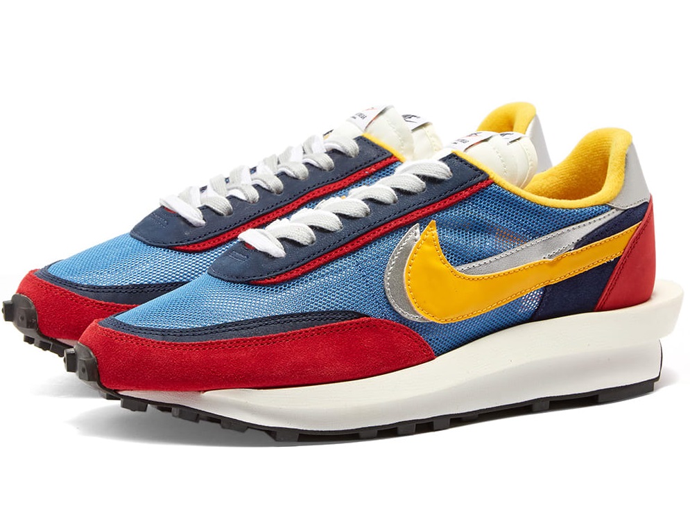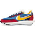Nike Waffle Daybreak x Sacai, синий с бордовым и желтым, текстиль, сетка, замша, мужские Размер 40