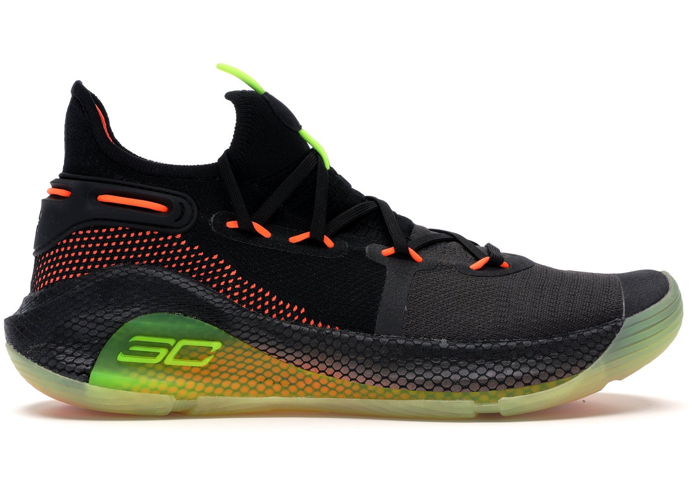 Under Armour Curry 6 Black/Green/Orange, черный, зеленый, оранжевый, нейлон, текстиль, мужские