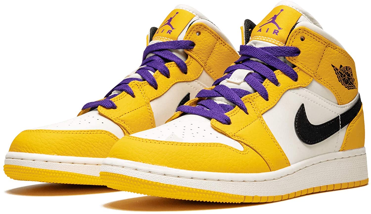 Nike Air Jordan 1 Mid «Lakers», белые с черным и желтым, кожа, нубук, женские