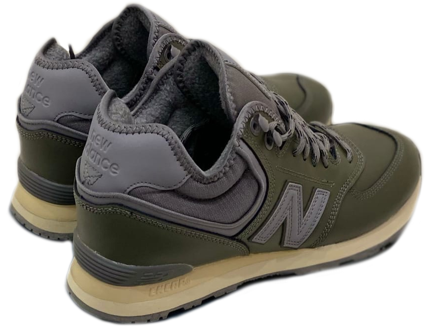 New Balance 574 Khaki, хаки с серым, кожа, мужские, зимние Размер 44